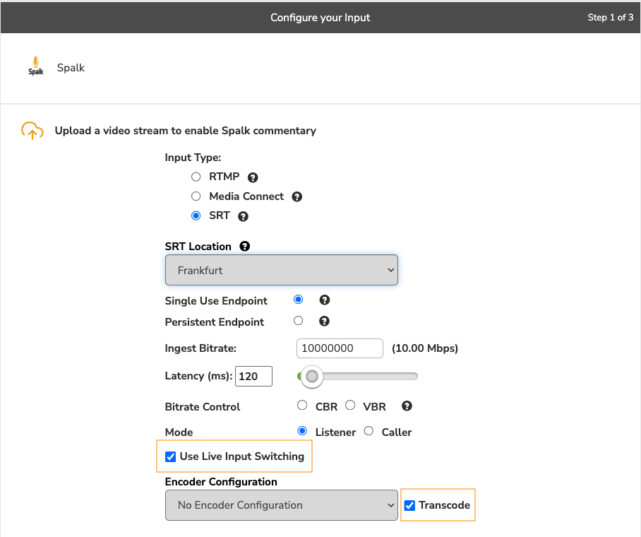 First, when uploading your event ensure you enable Transcoding, and Use Live Input Switching.